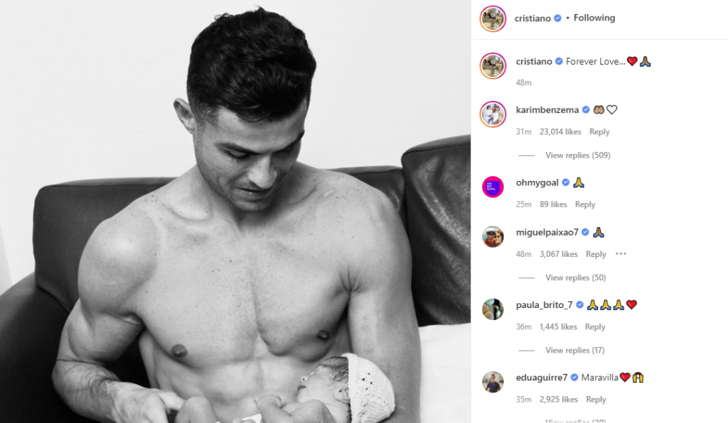 Za kratko vrijeme fotogafija koju je objavio Ronaldo je skupila nekoliko miliona ”lajkova”, a odmah su se javili neki od njegovih prijatelja.