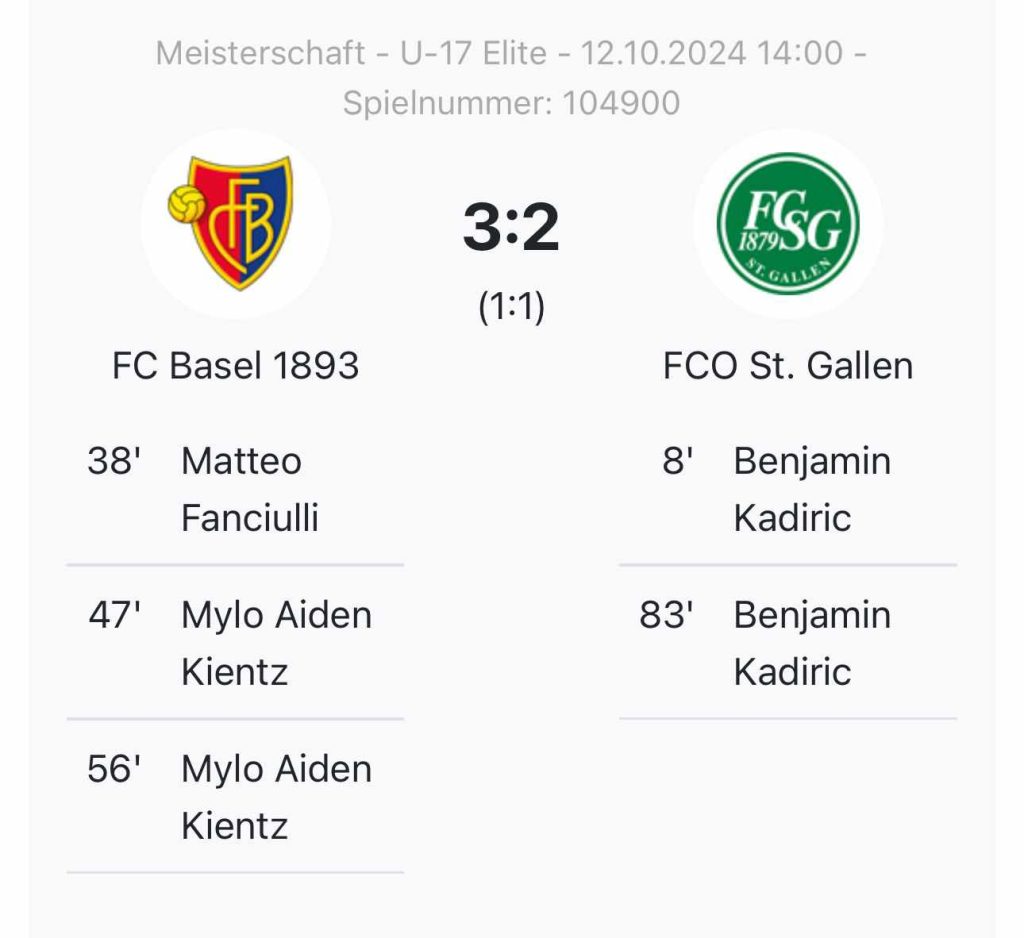 Njegov tim FC St.Gallen u gostima je poražen rezultatom 2:3 od prvoplasirane ekipe na tabeli Basela, ali mladi Kadirić odigrao je sjajno ovu utakmicu iako nije trenirao sa svojom ekipom nikako ovih dana jer je bio sa reprezentacijom.