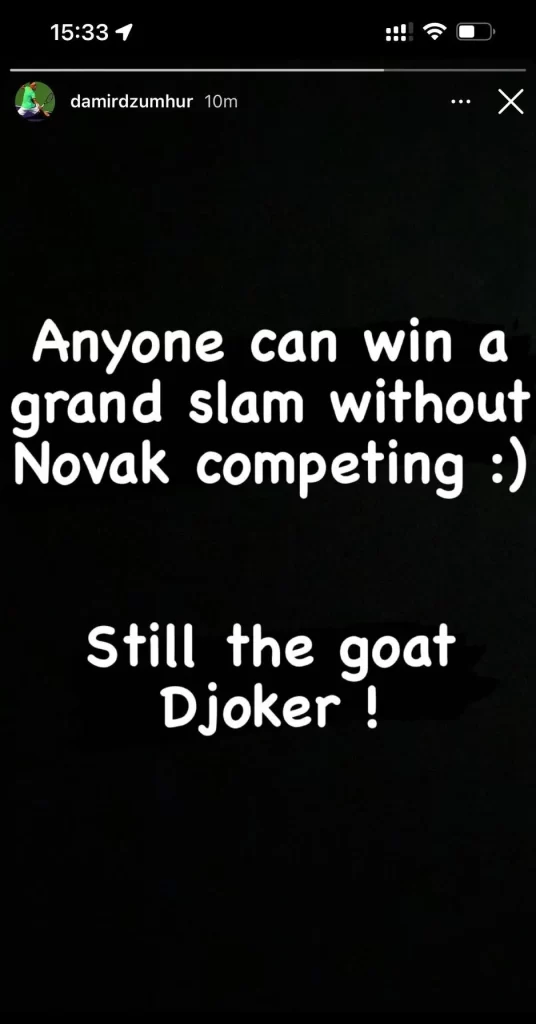 Ipak, Džumhur je u svojoj objavi napisao da “bilo ko može osvojiti” Grand Slam kada se Đoković ne takmiči te da smatra kako je srbijanski igrač još uvijek najveći teniser svih vremena.