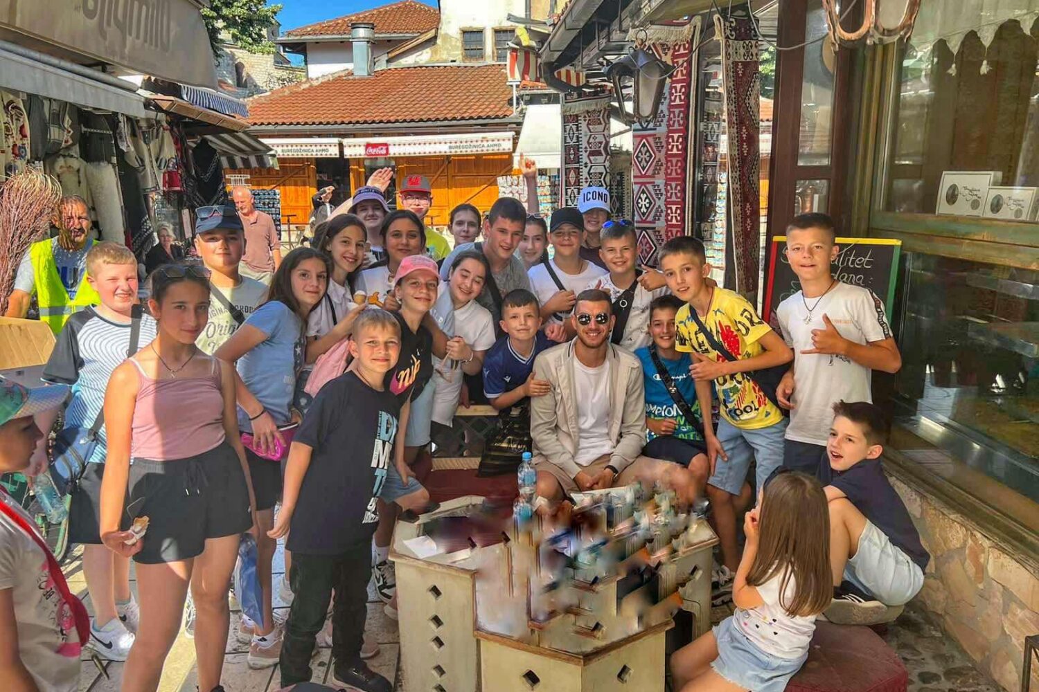 Džeko je na svom zvaničnom Facebook profilu objavio fotografiju sa Baščaršije na kojoj se uslikao sa velikim brojem najmlađih fanova.