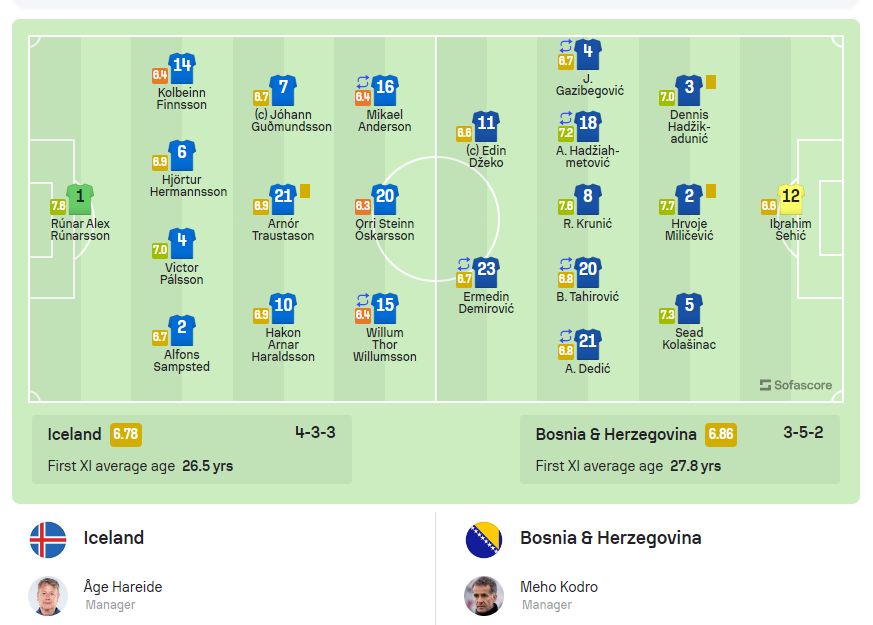 Kod Islanđana najbolji je golman Runar Alex Runarsson koji je dobio ocjenu 8.