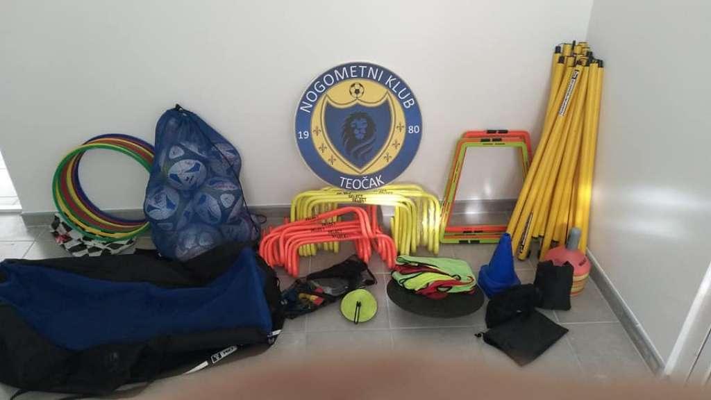 Značajna donacija za NK Teočak se sastoji od: štapova, tanjira, padobrana za opor, stepenica, markera lopti…