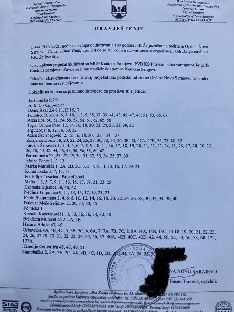 U obavještenju koje potpisuje načelnik Hasan Tanović, a koje je u posjedu Faktora, navedeno je da ovaj projekat ima podršku općine Novo Sarajevo.
