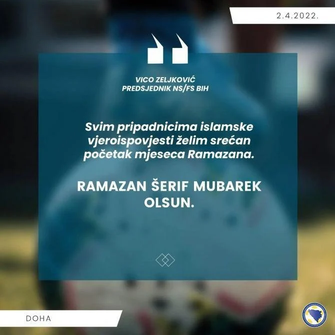 Predsjednik N/FS BiH, Vico Zeljković, uputio je čestitku povodom početka mjesecama ramazana.
