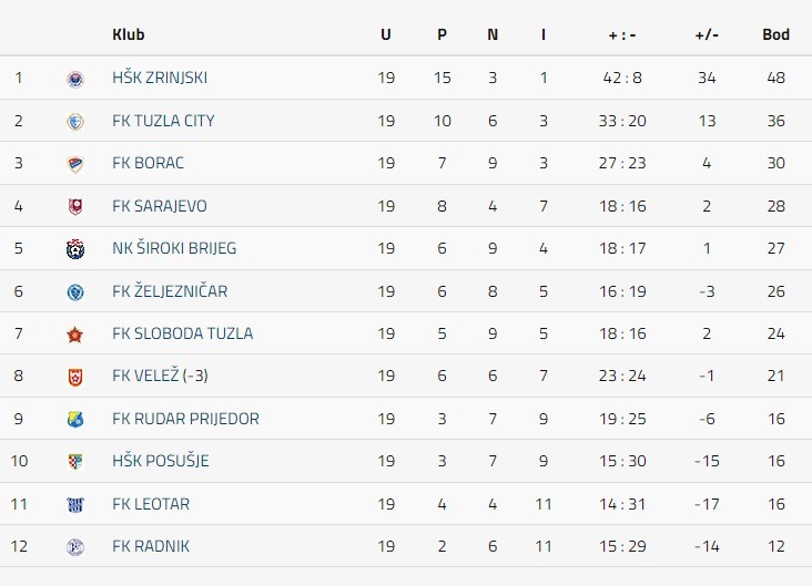 Jesenji dio Premijer lige BiH okončan je utakmicama 19. kola.