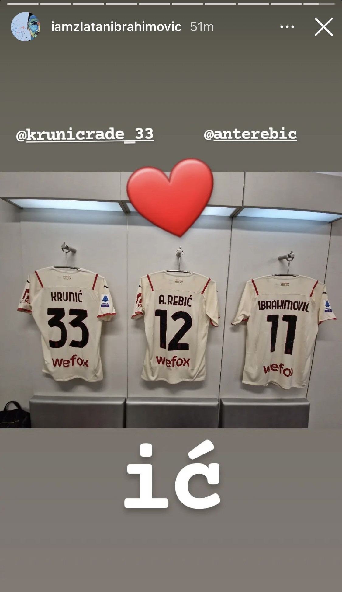Fudbaleri i navijača Milana slave titulu, a u centru pažnje je Zlatan Ibrahimović. Šta Ibrahimović misli o svom porijeklu najbolje pokazuje jedna od objava nakon osvajanja titule. Ibrahimović je objavio fotografiju iz svlačionice koja pokazuje da je njegovo mjesto uz našeg Radeta Krunića i Hrvata Antu Rebića. Zlatan je napisao ”ić” i stavio srce uz […]