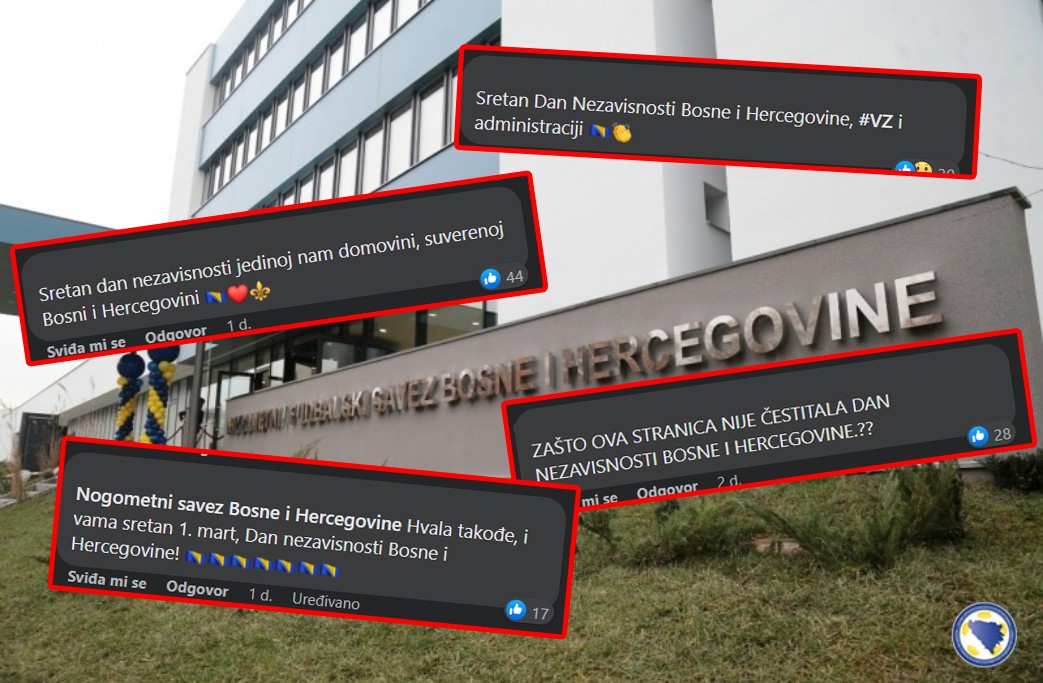 “Neka nam je sretan Dan nezavisnosti”, “Sretan vam 1. mart”, “Sretan Dan nezavisnosti Bosne i Hercegovine svim zaposlenicima FS BiH, a posebno predsjedniku”, “I danas vam sretan Dan nezavisnosti”, “Opet niste čestitali Dan nezavisnosti. Možete i sad nije kasno”, samo su neki od brojnih komentara naših razljućenih navijača.