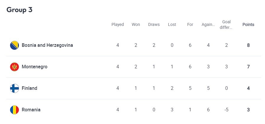 Bosna i Hercegovina je prva u svojoj grupi nakon četiri kola UEFA Lige Nacija.