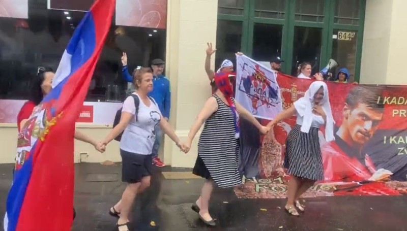 Na snimcima koji kruže društvenim mrežama može se vidjeti kako ispred hotela ima i policije, a da su Đokovićevi navijači “naoružani” zastavama Srbije, guslama, šajkačama, te transparentom na kojem je fotografija najboljeg tenisera svijeta. Folklor kojeg bi se postidio svako normalan…