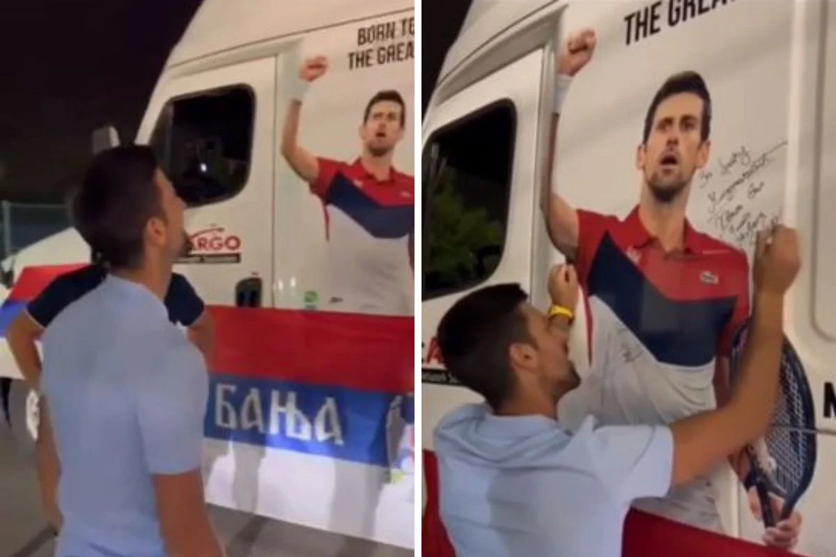 Đoković se odlučio potpisati na njihovo vozilo što je te navijače posebno oduševilo. Pored potpisa napisao je i posvetu braći Miodragović, no jedan detalj posebno se našao u centru pažnje kada su oni komentarisali narod Srbije i RS-a.