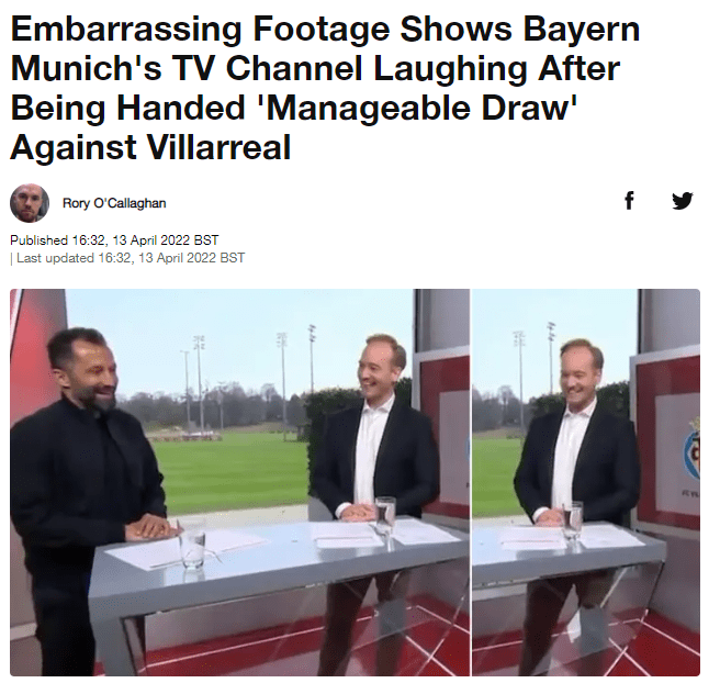 “Sramotnan video pokazuje kako su se u Bayernu smijali što su izvukli Villarreal”, piše engleski SportBible.