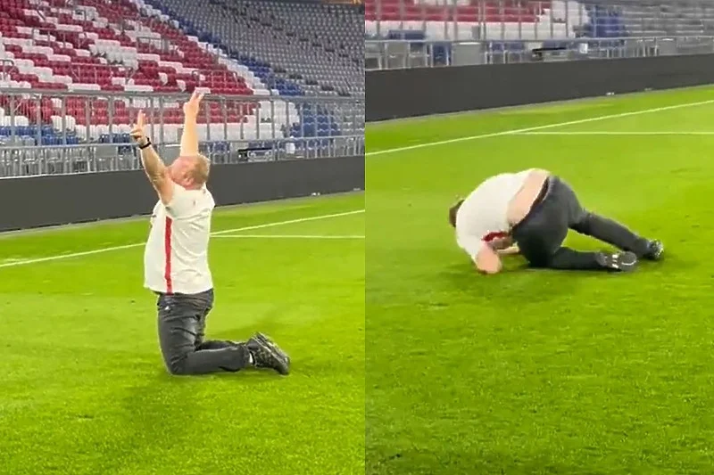Nakon što je nekako ušao u teren, kleknuo je na koljena i podigao ruke prema nebu, a video je postao hit na društvenim mrežama.